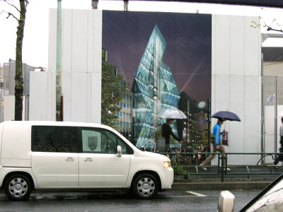 As I was walking from Shibuya to Harajuku the other day along Meiji Dori, I spotted this sign announcing the construction of a new building. Anyone know what this is?