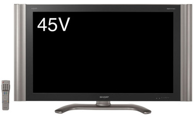 Well, after wanting one for ages, today we went out and got a 45-inch HDTV set (Sharp Aquos LC-45BE2W, info in English here). Yes, I do expect all productivity to go out the window when it gets delivered on Tuesday, especially when I hook up my Xbox 360 to it. Oh man, this is gonna be fun!