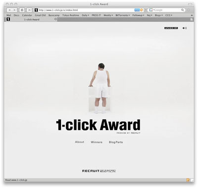Wow, very cool web work on the 1-click Award site, sponsored by recruiting company Recruit. Click on the man’s ass, and see him go! Via Imprint Talk.