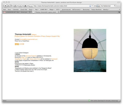 Fresh from his contributions to the “PROTOTYPE02” exhibition and his role as art director of the “Generate Presents” exhibition, Tokyo-based designer Thomas Antonietti updates his site with some new works.