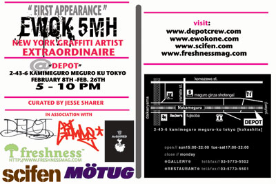 The flyer for the “EWOK 5MH” exhibition happening at Depot in Nakameguro, February 8-26