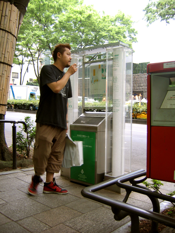 Remember that smoking lounge I found in Akihabara a while back? Now comes the smoke station, tiny booths for your smoking needs. This one is located on Omotesando.