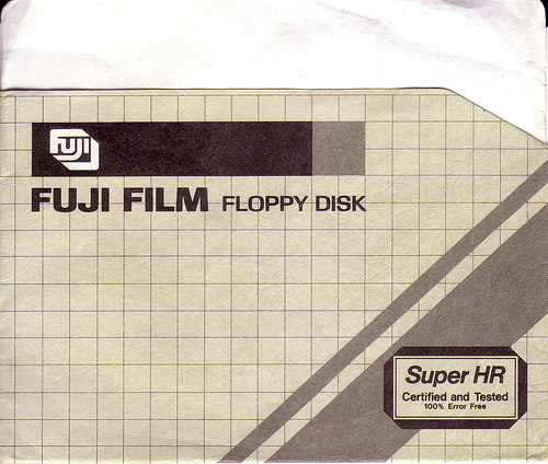 Patrick is archiving old Japanese floppy disk sleeves from work.