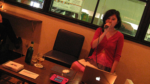 Here are a few shots (the rest after the jump) of the performance by Singapore’s The Analog Girl at Cafe Pause, this past Friday (August 17). I also recorded video of a few tracks, but unfortunately the completed file ended up being too big (1.7GB), and caused problems when I tried to transfer it. Thanks to everyone who showed up — I expect we’ll be doing more of these low-key performances at the cafe in the near future.
