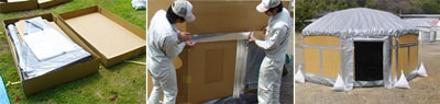 Nevermind dick in a box, how about house in a box, courtesy of manufacturer Sago Mozukai. Looks like a yurt, but is made of cardboard and duct tape. Via Danny Choo.