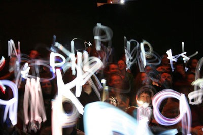 I just put up a post about the PechaKucha Night event held in Denver last week over at PechaKucha Daily, and wanted to share the image above, of the audience spelling out PKN with their mobile phones — love the effect it created. Maybe we should try and make it happen at tomorrow’s Tokyo edition!