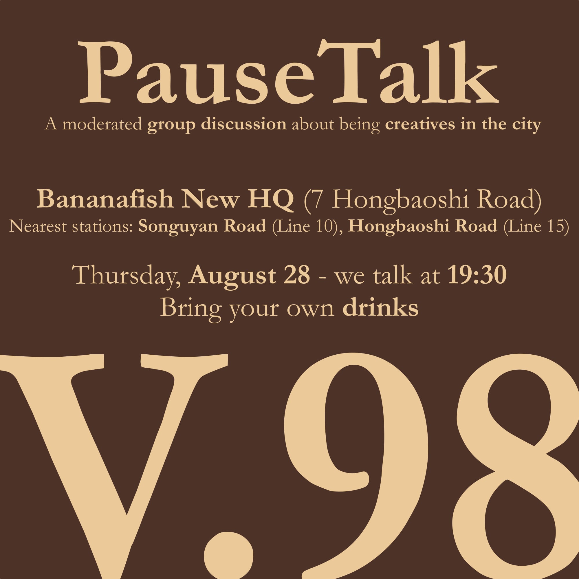 PauseTalk Vol. 97 will be held on Thursday, July 24, at Bananafish New HQ (7 Hongbaoshi Road). The session will kick off at 19:30, and you are welcome to bring drinks and snacks. Here’s the Facebook event page, and you can get more regular updates on the event via our WeChat group (contact me to…
